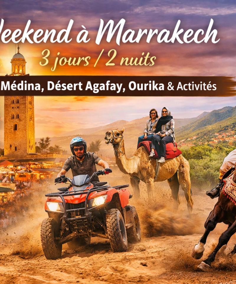 Weekend Marrakech 3 jours 2 nuits avec Riad dans la Médina, Désert Agafay, Vallée de l’Ourika et Activités